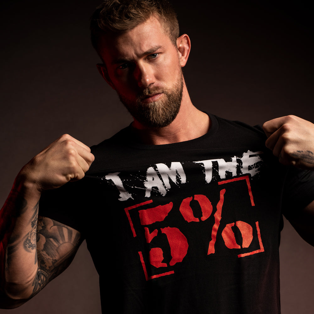 - Brand New Love It Kill It geometrical design in red and white on the front; completed by the same geo design spelling out 5 Percent, on the back